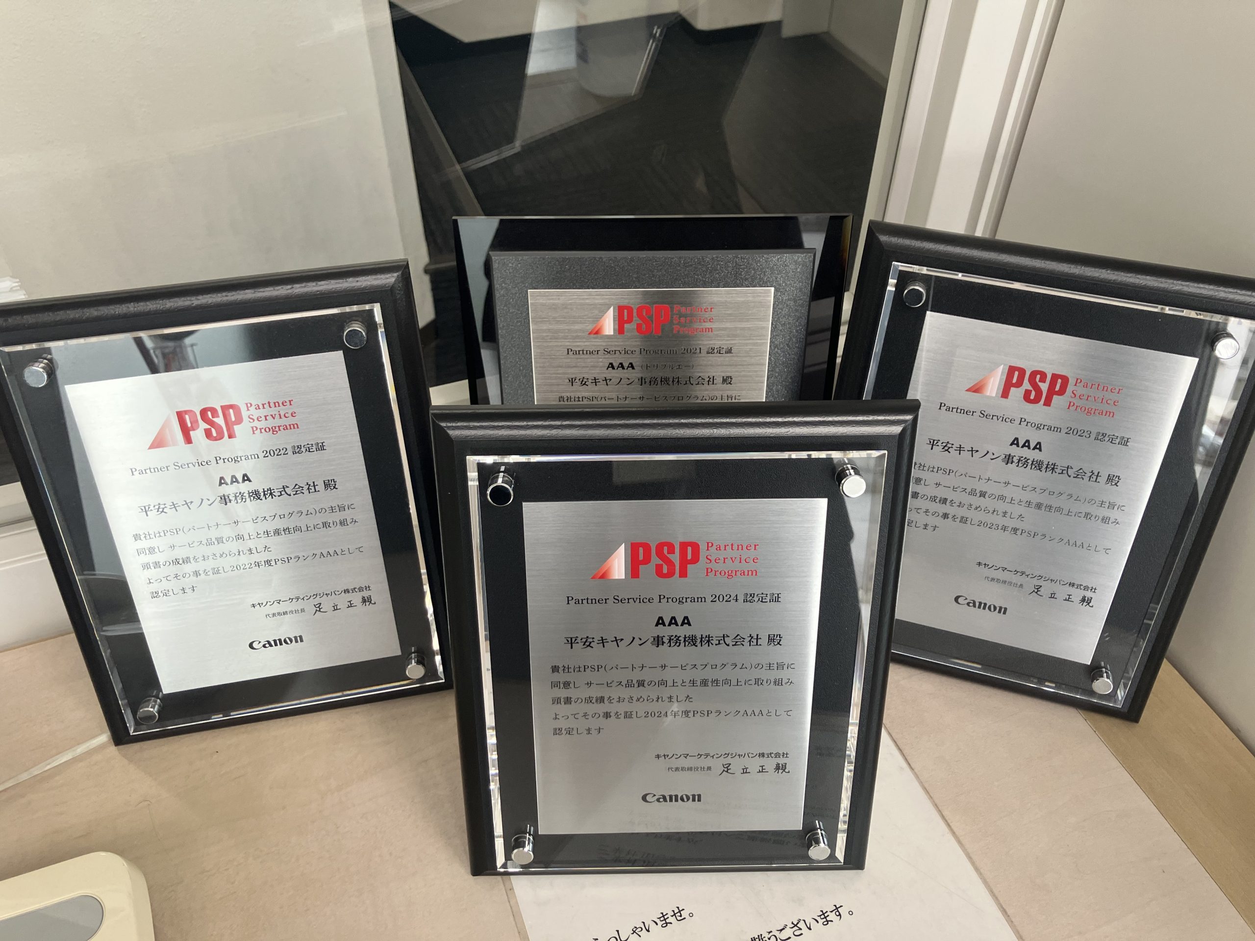平安キヤノン事務機は全国上位のパートナーに与えられる『AAA』の称号を得ることができました。4年続けての評価になります。