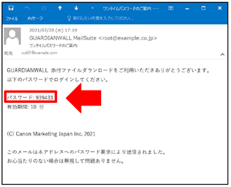 3.ワンタイムパスワード通知メールが届きますので、パスワードをご確認ください。