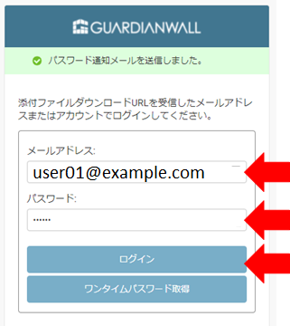 4.メールアドレスとワンタイムパスワードを入力し、「ログイン」をクリックします。