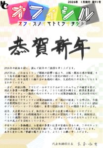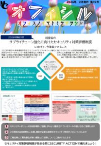 ーオフィシルー 画像クリックでPDFが開きます。 2025年まではこちら 第91号 発行日2026年2月1日 1.サプライチェーン強化に向けたセキュリティ対策評価制度に向けて、今準備できること2.2026年義務化予定ストレスチェック対策とカスハラ対策3.“手に届く価格”で“手がとどかなかった業務効率最適化”を「PCA Hub」4.「楽楽精算」で面倒な作業とおさらば 第91号 発行日2026年1月1日 1.新年のご挨拶2.年末調整2026年からは楽しませんか?3.ランサムウェア対策「AppCheck」4.遠隔接客サービス「RURA」5.Canon Security Daysのご案内
